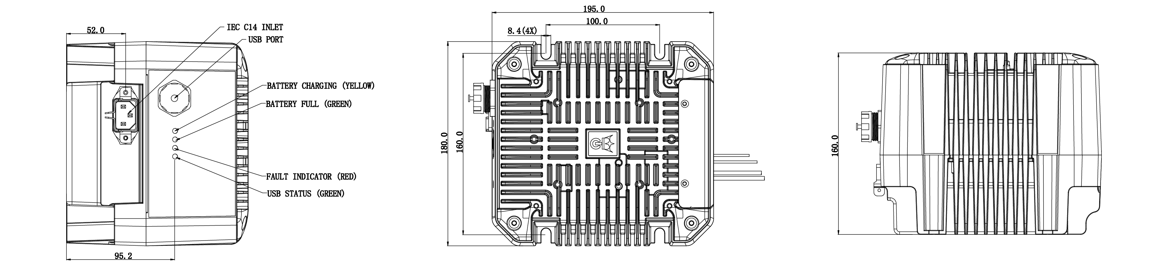 | Dimensions | L195 x W180 x H160 mm |